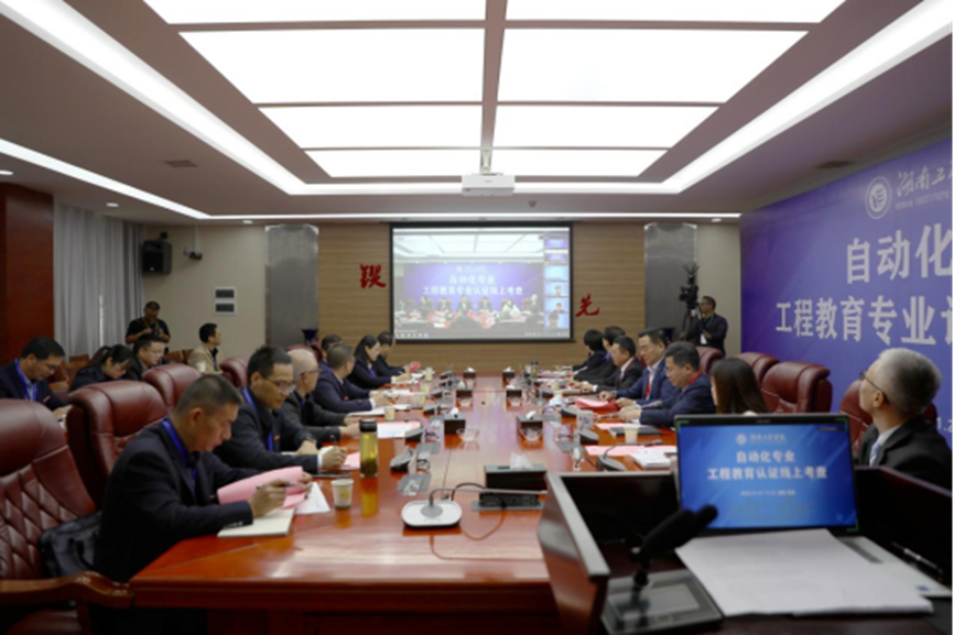 From November 21 to 22, experts of China Engineering Education Accreditation Association conducted an online assessment of the automation major in our school. On the morning of the 21st, the meeting attended by accreditation expert group and faculties of our school was held in the second conference room in an online and offline way. Professor Dai Xianzhong of Southeast University(leader of the expert group), Professor Zhang Youbing, Vice President of Hubei University Of Automotive Technology, Senior engineer Zhang Gang, Deputy Director of CNEx, Professor Hu Jianling of Soochow University and Professor Wu Xiaojie of China University of Mining and Technology, attended the online meeting. Associate Professor Cao Xiaozhou of Northeastern University was the secretary of the accreditation team. Chen Yuetang is now Party Secretary of the CPC Hunan Institute of Engineering Committee; Yi Bing, vice secretary of the CPC Hunan Institute of Engineering Committee and president of Hunan Institute of Engineering, Luo Yiping member of the HIE Party Committee and Vice President of HIE, and heads of relevant departments and colleges attended the meeting. The meeting was held in two stages, presided over by Luo Yiping and Dai Xianzhong respectively.