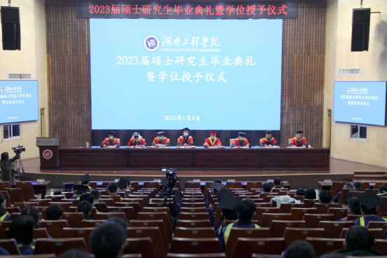 On January 4th, the graduation ceremony and degree awarding ceremony of the 2023 postgraduate students in our school was held in lecture hall 1. School leaders, members of academic degree evaluation committee, members of master's degree evaluation sub-committee, dean of respective colleges and vice president in charge of postgraduate education, personnel in charge of relevant degrees and secretary of degree management, representatives of postgraduate tutors, teachers and graduate students attended the ceremony. The meeting was presided over by Wei Kexiang, vice president and member of the HIE Party Committee.
