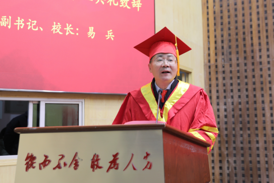 Yi Bing, vice secretary of the CPC Hunan Institute of Engineering Committee and president of HIE, extended warm congratulations to the 63 graduate students who successfully obtained master's degrees. He acknowledged the achievements of postgraduate education in HIE, asking all the graduates to stick to their initial intentions with responsibility, empathy and tolerance in the future. At the same time, he hopes that the students could root their love for motherland in the heart and maintain motivated to better themselves. Only in this way can they respond to the call of times and make the most use of their youth to contribute to the development of thier motherland, people, nation and mankind.