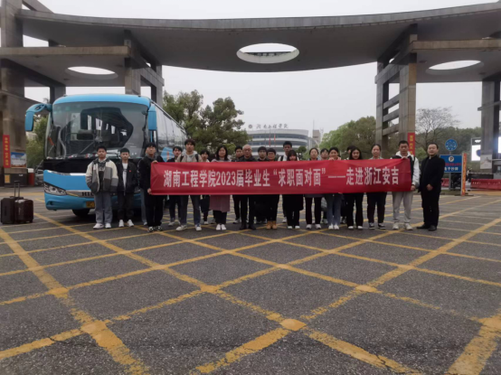 From March 27 to 29, the faculty of the Admissions, Employment, Innovation and Entrepreneurship Guidance Office, the Youth League Committee and the College of Applied Technology led 22 students of 2023 graduation to Zhejiang for job hunting. They visited enterprises in Huzhou, Zhejiang Province, and helped students to apply for jobs and seize potential opportunities for cooperation.