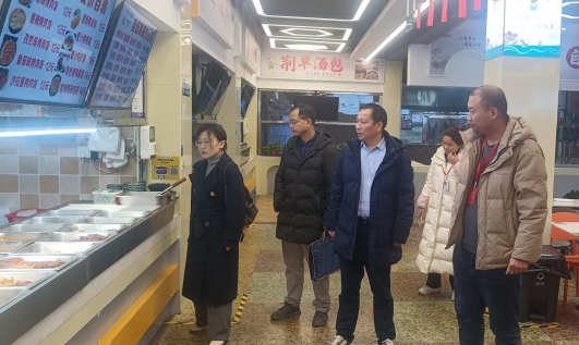 On the afternoon of February 23, Vice President Wei Kexiang led a food safety inspection team to visit campus canteens, accompanied by officials from the Logistics and Infrastructure Department.