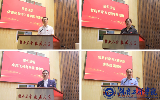易兵指出,三个学院的更名以及卓越工程师学院的成立是所在学院发展史上的重要里程碑,代表了学院的定位和发展目标的升级,体现了学校对于未来教育理念的追求和展望。面对国家高质量发展的新要求、地方经济社会快速发展的新需求、学校跨越发展的新任务,易兵对四个教学院未来发展提出了殷切期望,希望他们牢记使命任务,立足新的起点,继承和发扬过去的优良传统,面向信息科学、生命健康、智能制造、卓越工程师培养,深化工程教育改革,优化学科结构,提升科研实力,不断取得创新和突破;希望全体教学单位携手并进,面向国家和湖南、湘潭战略需求,瞄准最新学科前沿,汇聚优质创新资源开展科学研究、人才培养和社会服务,为新质生产力发展培养更多具备创新精神和工程实践能力的卓越工程人才,为区域经济和产业升级提供更多科技支持,以学院之强聚力湖工之强,以湖工之强助力全省教育之强,为科教兴国战略作出更大贡献!