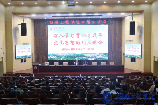 4月16日下午,365官网在一报告厅举行“卓越大讲堂”之干部培训学术讲座,湖南省社科联党组书记、副主席胡代松应邀作《深入学习贯彻习近平文化思想的几点体会》辅导报告。校党委书记黄昕主持报告会。湘潭市社科联党组书记、副主席李峰,学校中层以上干部、教研室主任、校社科联会员参加学习。