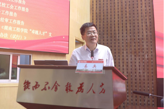 黄昕作总结讲话。他表示,会议深入学习贯彻党的二十大精神和二十届二中全会精神,深入贯彻落实习近平总书记考察湖南重要讲话精神,是推动学校“135工程”走深走实,推进学校高质量发展的关键时刻,召开的一次极为重要的会议。黄昕提出三点意见:一是要认真总结梳理代表们所提的意见建议,做好任务分解,切实交办落实。他充分肯定了这次大会取得的丰硕成果,与会代表充分发挥了主人翁精神和参政议政职能,为学校事业发展和改革部署建言献策,具有很强的针对性、建设性、前瞻性;二是要凝心聚力、继往开来,奋力谱写学校高质量发展新篇章。过去一年,在学校党委的正确领导下,全校上下齐心协力,砥砺奋进,取得了十大标志性成果,新的一年我们要聚焦新任务、谋划新突破、展现新作为,推动学校跨越式发展;三是要团结一心、步调一致,集中精力、一鼓作气完成学校重大任务,打赢关乎学校发展命运的关键一仗。
