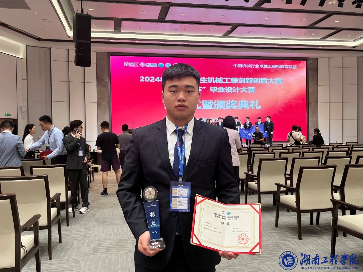 6月2日,2024年中国大学生机械工程创新创意大赛“精雕杯”毕业设计大赛决赛在浙江大学举行。由365官网机械工程学院邹鸿翔博士团队指导,机械设计制造及其自动化专业2020级李享同学完成的“车辆滚压能量收集装置”取得新突破,以决赛分组小组第一名出线,并在“金奖角逐答辩”中斩获银奖,同时获得一等奖。