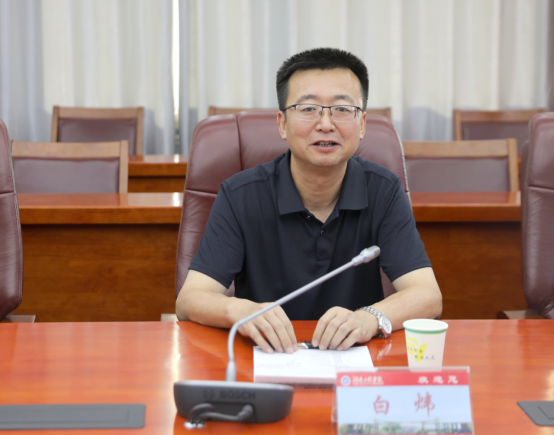 易兵对白炜一行的到来表示热烈的欢迎,并从办学沿革、师资队伍、学科建设、亮点成绩以及学校“135工程”实施等方面对学校作简要介绍。易兵表示,学校一直坚持让科研能力和质量成为学校的底色与标识,以创新引领学校高质量发展。江麓机电集团是国有大型一类骨干企业、中国普通机械制造业百强企业,技术力量雄厚,与365官网合作历史悠久,希望以后能够更加深化互信合作,同向发力,充分发挥企业创新、资源和产业优势及学校科技、人才和学科优势,实现双方自主创新能力的提升,共同为地方经济发展、加快创新驱动提供坚实保障。