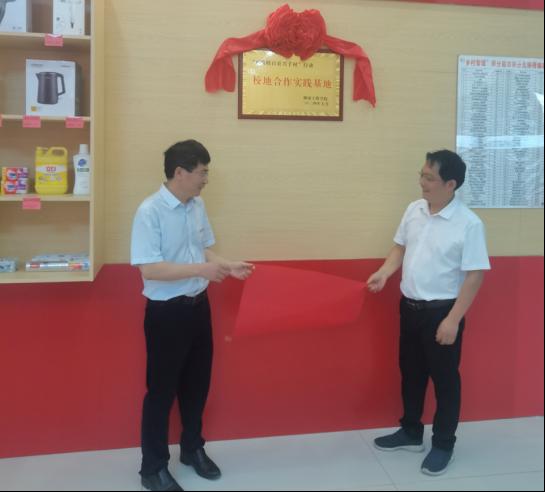 易兵、肖从贵为“百校联百县兴千村校地合作实践基地”揭牌,并与正在进行电商人才培训和助农直播实践教学与演示的管理学院消费帮扶直播团队朱春晖等师生亲切交谈。