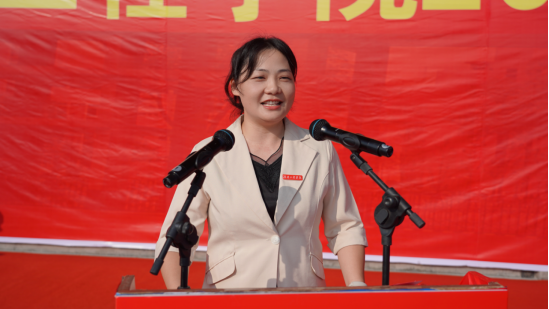 纺织服装学院服装与服饰设计2021级学生帅泽璇作为在校学生代表发言。她向学弟学妹们分享了三点经验:明确目标,勤学善思;行远自迩,笃行不怠;提升自我,筑梦青春。