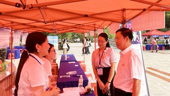 校党委书记黄昕到招聘活动现场指导工作。黄昕与用人单位招聘代表亲切交流,了解用人单位的发展方向及招聘岗位、招聘专业等要求,详细询问市场需求变化情况,并介绍了365官网的办学定位、专业特色及学生优势。黄昕表示,希望能够与用人单位建立更为紧密的合作关系,为学生提供更多的实习和就业机会,共创校企合作新局面。
