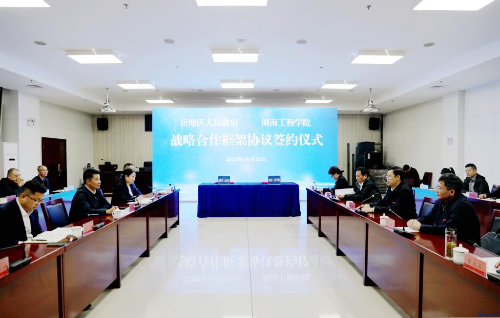 黄昕表示,此次协议的签订,是岳塘区与学校的一场“双向奔赴”,大学是城市的灵魂,城市孕育大学,大学反哺城市。1951年以来,学校在岳塘区这片土地上成长和壮大,经过73年的耕耘,发展到今天,一系列成绩的取得,离不开岳塘区长期以来的支持与帮助。此次协议的签订,为岳塘区带来了一股“全新力量”,学校人才汇聚,在科学技术、社会服务、攻坚克难等方面,可以更好服务于岳塘区发展;学校培养的人才门类齐全,能够为岳塘区经济发展提供人才支撑。此次协议的签订,是学校的一次重大机遇,岳塘区近几年各项经济社会发展指标走在全省前列;学校将在产业发展、乡村振兴、文化兴盛、金融服务等方面与岳塘区展开广泛又深入的合作,共同实现岳塘区发展的宏伟蓝图。