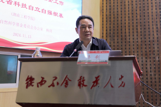 会议第二阶段,湖南省自然科学基金委员会办公室主任杨剑作题为“切实加强自然科学基金工作,夯实我省科技自立自强根基”的培训报告。他深入阐述了自然科学基金的重要性,并强调加强基础研究、抢抓历史机遇和加强沟通协调的必要性。杨剑的报告高屋建瓴、深入浅出,内容精彩,引人入胜。