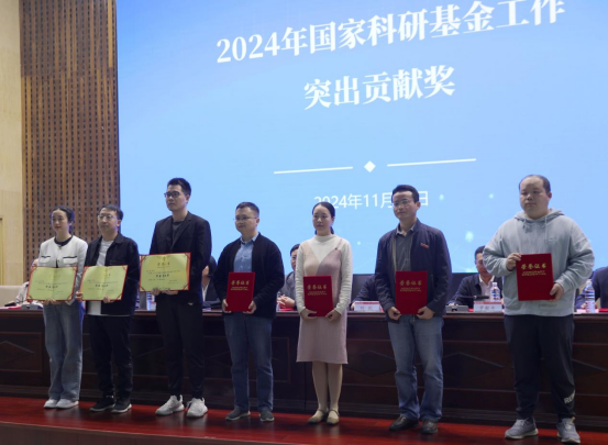 为表彰在科研工作中取得突出成绩的教师,学校对王琼等15位2024年国家基金获得者进行了表彰,并为他们颁发国家基金申请工作突出贡献奖的荣誉证书。