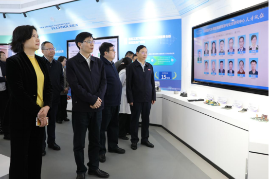 揭牌仪式结束后,与会人员一同参观了新能源汽车创新研究院展示中心,详细了解了学校在新能源汽车领域的研究方向、专家团队、科学研究成果、发展历程、未来规划等多方面的内容。