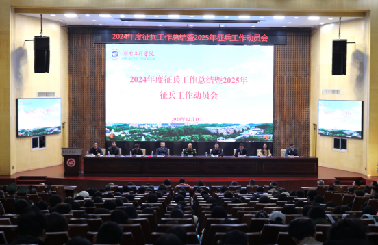 12月18日下午,学校2024年征兵工作总结暨2025年征兵工作动员大会在一报告厅举行。湘潭市市委常委、湘潭军分区政治委员、湘潭市征兵工作领导小组副组长黄献国,党委书记黄昕,党委委员、副校长张小刚,宣传部、学生工作部、教务处、招生就业与创新创业指导处、人民武装部、团委相关负责人及各学院书记、副书记、征兵专干以及学生代表参加。