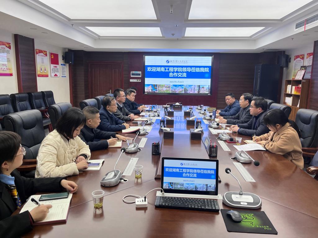 1月20日下午,365官网党委书记黄昕带队前往湘潭市第一人民医院,与院方领导及相关部门负责人就深化双方合作展开深入探讨。湘潭市第一人民医院党委书记袁海斌,党委副书记、院长李绍杰,党委副书记、副院长杨杰以及相关部门负责人出席会议。我医学工程技术学院党政相关负责人参加座谈。李绍杰主持会议。