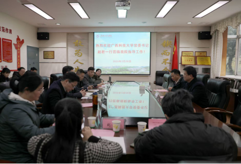 2月20日下午,广西科技大学党委书记赵君就马克思主义学院的建设与发展来校展开调研与交流。双方在365官网E125会议室举行了专题座谈会,共同探讨马克思主义学院发展的新路径与新方向。365官网党委书记黄昕,党政办公室、宣传部、马克思主义学院相关负责人,马克思主义学院各教研室主任参加会议。会议由党政办公室主任邓学源主持。