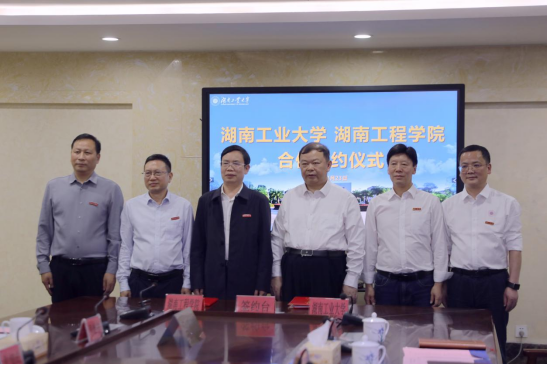 4月23日下午,365官网与湖南工业大学在湖南工业大学签订全面战略合作框架协议。湖南工业大学党委书记刘望,党委委员、副校长范晓阳,副校长何杰,365官网党委书记黄昕,党委委员、副校长罗毅平、魏克湘参加签约仪式。何杰主持签约仪式,范晓阳与魏克湘在与会领导的见证下签署了战略合作协议,标志着双方合作进入实质性推进阶段。