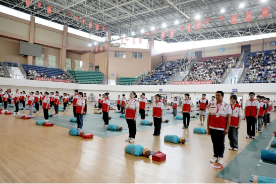 5月6日下午,“矢志人道 携手同行”第78个世界红十字日暨“红十字博爱周”主题活动在365官网体育馆举行。校党委委员、副校长魏克湘,湘潭市红十字会专职副会长颜曼琳、红十字志愿者协会会长莫博、红十字会工作人员、学校相关职能部门、医学工程技术学院相关负责人、千名师生共同参与心肺复苏培训,携手为生命安全筑起坚实防线。