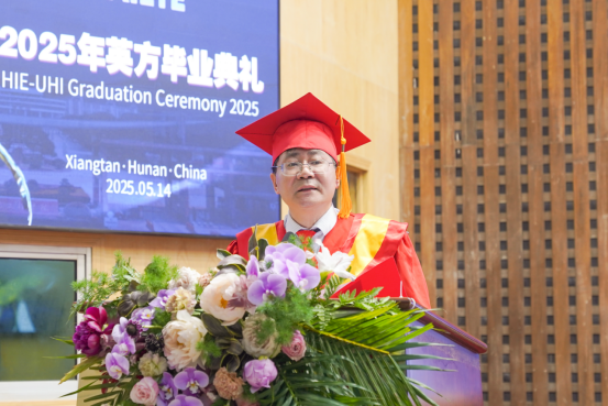 “我谨代表365英国上市官网,向远道而来的英方伙伴、无私奉献的教育工作者、倾力支持的家长们,以及2025届全体毕业生,致以最热烈的祝贺与最衷心的感谢!”党委委员、副校长罗毅平致辞。他勉励毕业生们以湖湘文化“敢为人先”为舟,以UHI“创新基因”为帆,在民族复兴的征程中镌刻属于中英合作学子的璀璨荣光!