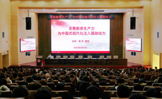 6月16日下午,党委副书记、校长易兵在一报告厅以《发展新质生产力——为中国式现代化注入强劲动力》为题讲授思政课。他深入解读新质生产力的时代内涵与实践路径,鼓励师生在实践过程中将“中国式现代化”的本质要求内化于行,为推动高质量发展提供理论指引。