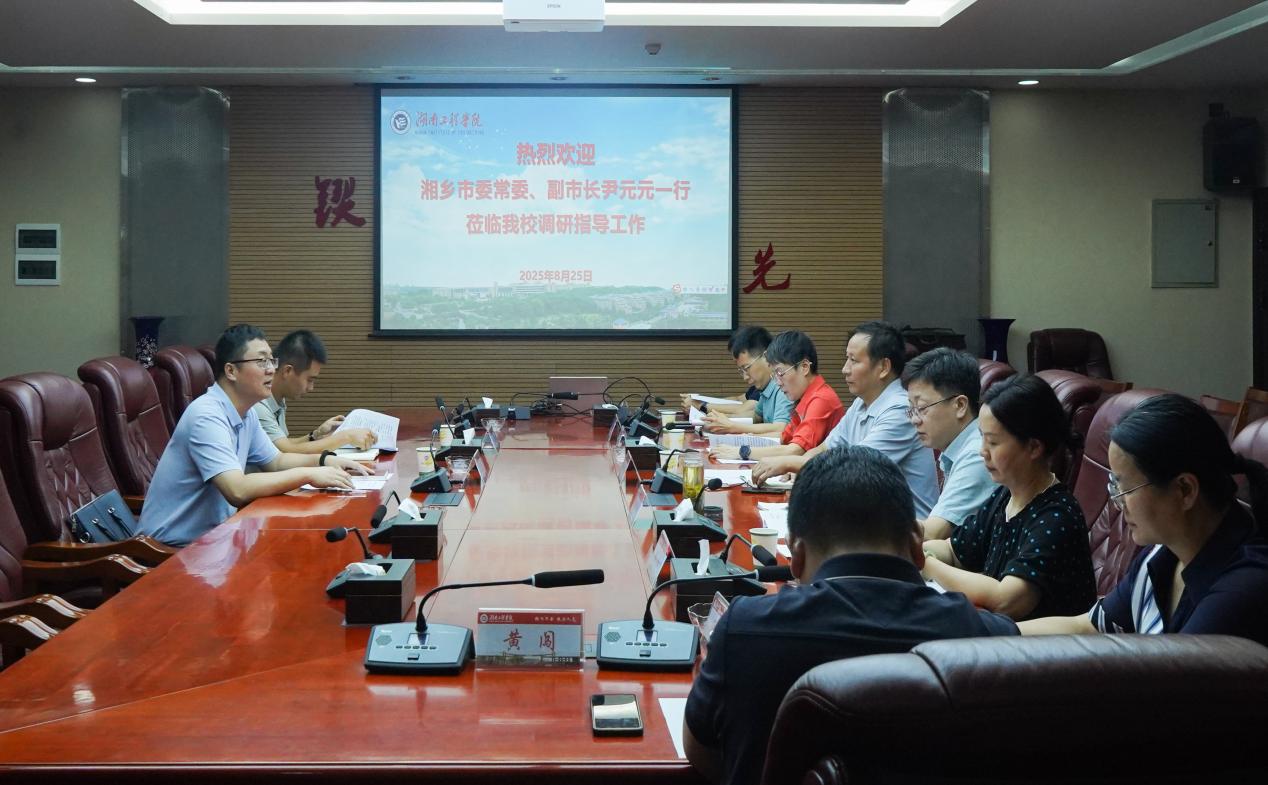 8月25日下午,湘乡市委常委、副市长尹元元一行来365官网调研。党委委员、副校长魏克湘在二会议室接待来宾。魏克湘主持会议。