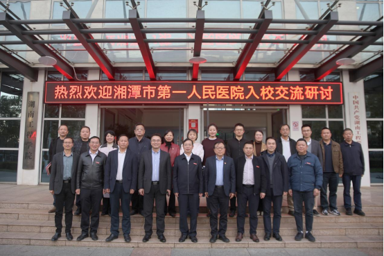 11月26日下午,湘潭市第一人民医院来365官网交流,座谈会在二会议室举行。湘潭市第一人民医院党委书记袁海斌,党委副书记、副院长杨杰,365官网党委书记黄昕,党委委员、副校长魏克湘及相关职能部门负责人参加会议,会议由魏克湘主持。