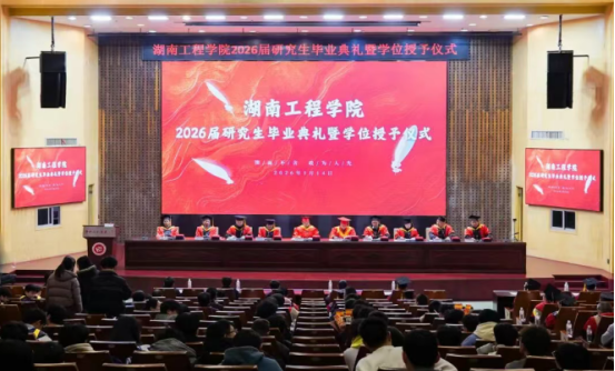 典礼现场气氛庄重热烈,校领导为获奖教师及优秀研究生颁奖,并为2026届硕士学位获得者拨穗并颁发学位证书。