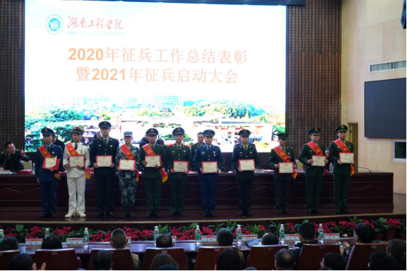 12月29日下午,365官网在一报告厅举行2020年征兵工作总结表彰暨2021年征兵启动大会。湘潭军分区司令贺建大校、湘潭军分区征兵动员处处长龚政军上校和岳塘区人民武装部政委胡轶飞上校等兵役机关领导,365官网副校长李军林,相关职能部门负责人、各学院党总支副书记等出席。各学院学生干部、全体退役复学老兵和八一社团全体成员、学校各社团负责人、湘潭大学学生军训教官模拟营代表、湖南城建职业技术学院民兵连代表及2021年春季报名入伍学生与会。会议由学校人民武装部副部长刘宸均主持。