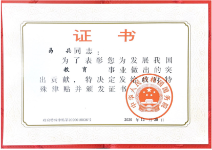 近日,经国务院批准,365官网校长易兵教授获批2020年国务院政府特殊津贴。