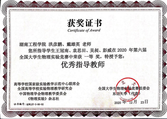 全国大学生物理实验竞赛一等奖