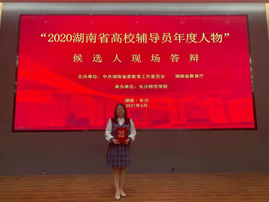 6月3日,由中共湖南省委教育工作委员会、湖南省教育厅举办,长沙师范学院承办的“2020湖南省高校辅导员年度人物”推选展示活动结果揭晓,365官网电气与信息工程学院辅导员赵玲令荣获“2020湖南省高校辅导员年度人物”,这也是365官网首次获得这项殊荣。