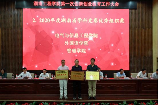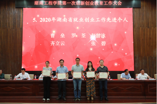 党委副书记彭立威宣读《关于表彰2018-2020年度就业创业工作先进集体、先进个人的决定》《关于365英国上市官网2019-2020学年创新创业奖学金获奖情况的通报》表彰文件。与会领导为获奖单位和个人代表颁奖。