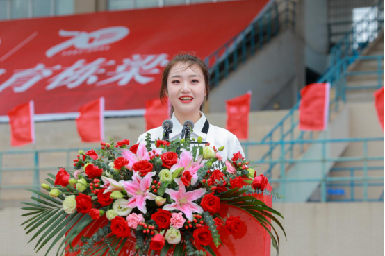 “作为新一代湖工人,面临创新发展的新机遇,我们有信心传承‘锲而不舍,敢为人先’的校训精神,我们有信心承担起中华民族伟大复兴的历史重任。站在新的历史起点,我们新一代湖工人,必将大有可为,也必将大有作为!”学生代表外国语学院英语1901班学生朱惠然说道。