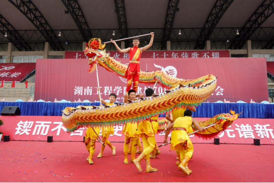 “祝福母校70华诞生日快乐!”在大会正式开始前,会场上滚动播放校友、师生祝福视频,点燃了大家的爱校热情。建校70周年专题宣传片《七秩·芳华》通过一幕幕丰富多彩的光影图像,再现学校攻坚克难、砥砺奋进的办学历程,让校友们追忆似水流年。全场合唱《湖工生日快乐》,将现场喜庆气氛推向高潮。湖南农业大学舞龙队表演《龙腾狮跃庆九州》为365官网带来了一份特别的生日礼物。许多兄弟院校、友好单位发来贺信,祝福365官网七秩征程,再创辉煌。