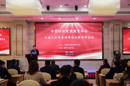 12月19日,由中国纺织服装教育学会主办、365官网承办的中国纺织服装教育学会七届三次常务理事会暨理事会议在湘潭举行。中国纺织服装教育学会常务副会长倪阳生、副会长兼秘书长纪晓峰,365官网校长易兵,以及来自国内40多所纺织服装相关高校负责人、专家及国内纺织服装行业领先的相关企业、机构负责人近100余位代表出席。会议由纪晓峰主持。