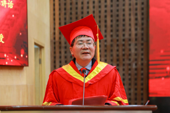 伴随着庄严的国歌,毕业典礼拉开了帷幕。校长易兵致辞,他表示,2021年我们庆祝了中国共产党百年华诞,一道迎来了学校建校70周年,“你们与新时代同向同行同前进,与学校同行同向同成长、同心同德同奋进。每一位湖工毕业生都很优秀。”易兵说。生逢盛世,肩负重任,易兵深情寄语即将踏上新征程的毕业生们,希望大家要始终涵养家国情怀,筑牢道德根基,发扬创新精神,以青春为风、奋斗为帆,在新的奋斗征程中谱写光辉灿烂的青春之歌。