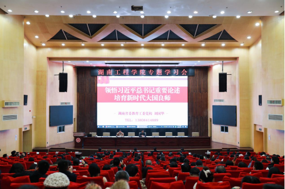 为深入学习习近平新时代中国特色社会主义思想,认真贯彻落实习近平总书记关于教育的重要论述精神,进一步加强365官网教师队伍建设,切实提升教师综合素质和教学水平,1月14日上午,365官网邀请省委教育工委党校常务副校长、省高校干部培训中心主任刘国华教授作《学习习近平总书记关于教育的重要论述,争做新时代大国良师》主题讲座。讲座由党委委员、副校长向前主持。在家校领导,全体中层干部,各基层党委(党总支部)统战委员,全体教学教务管理人员,学生工作处、教务处相关工作人员,学生辅导员参加。