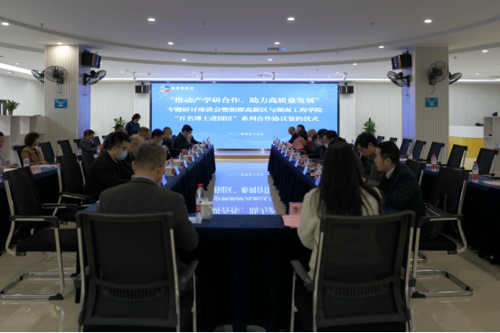 为贯彻落实国家、省、市有关高校毕业生就业工作的决策部署,落实就业工作“一把手”工程,汇聚社会各方资源,拓展优质就业岗位,深化产教融合、校企合作,提升毕业生就业质量和学校服务地方经济发展的能力,4月15日下午,校党委副书记、校长易兵,党委委员、副校长魏克湘一行前往湘潭高新区交流,参加产学研合作专题研讨座谈会暨“百名博士进园区”系列合作协议签约仪式,走访相关企业。
