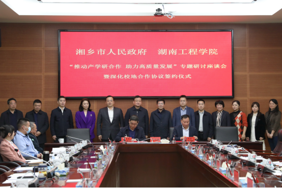 湘乡市市委常委、常务副市长谢志宏,副市长李佳谕、傅国强,经开区党工委书记、管委会主任彭丰伟,市人大三级调研员陈钧武,市政府办、发改局、教育局、科技工信局、财政局、人社局、商务局主要负责人;湖南埃普特医疗器械有限公司、湖南湘君电子科技有限公司、湖南振添光学玻璃科技有限公司、湖南省金河计算机科技有限公司、湖南新曙光制造有限公司、湖南省三联环保科技有限公司等企业负责人;365官网科技处、教务处、招生就业指导处、校友办、电气与信息工程学院、机械工程学院、计算机与通信学院、设计艺术学院、工程训练中心、创新创业学院等单位负责人参加座谈。