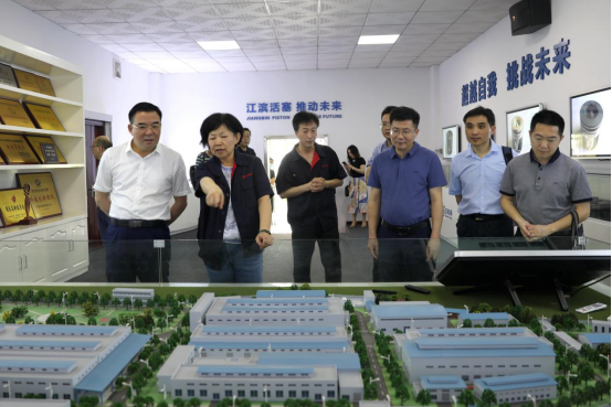 25日下午,陈岳堂、易兵一行前往江南,在王玮带领下参观江南产品展示厅,深入工房、自动化总装生产线了解生产设备、工艺和产品。