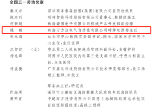 近期,中华全国总工会召开大会表彰2022年全国五一劳动奖和全国工人先锋号获得者,365官网2006级电气工程专业校友姚鹏荣获“全国五一劳动奖章”。