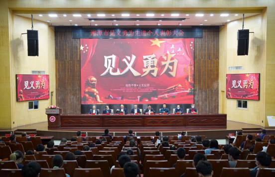 为表彰先进,弘扬正气,营造崇尚见义勇为精神的良好氛围,5月24日下午,湘潭市见义勇为先进个人表彰大会在365官网一报告厅举行。湘潭市委常委、政法委书记向敏,市中级人民法院院长罗重海,市人民检察院检察长罗青,365官网党委委员、副校长张小刚,市委副秘书长贺竞文,市人民政府副秘书长王建军,市委政法委常务副书记张柏文,市委政法委副书记钟立新出席会议。