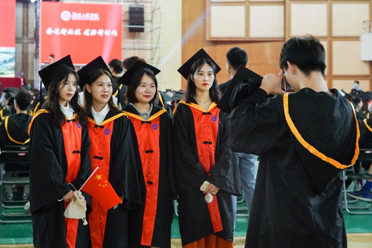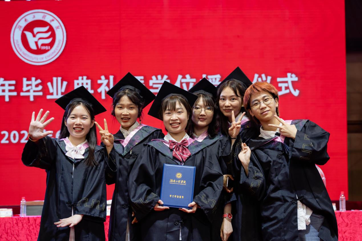“相聚湘江之滨,踏着伟人足迹……”熟悉的校歌旋律响起,全场毕业生齐唱校歌,为毕业典礼、也为在湖工的求学生涯画上了圆满句号。