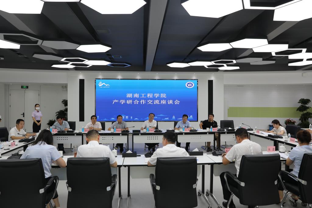 座谈会由岳麓山大学科技城党委书记、管委会主任罗予武主持,岳麓山大学科技城党工委委员、管委会副主任周建华介绍了科技城产学研开展情况,365官网科技处负责人介绍了学校基本情况与办学特色。