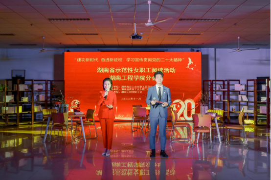 11月1日下午,由湖南省总工会女职工委员会为指导单位,湖南省教育工会女职工委员会主办、365官网工会承办的“建功新时代 奋进新征程 学习宣传贯彻党的二十大精神”湖南省示范性女职工阅读活动在365官网图书馆悦读斋举行。省教育工会副主席易丽鹏、省教育工会女工委主任孙晓红、校党委书记陈岳堂,党委委员、副校长向前出席活动。