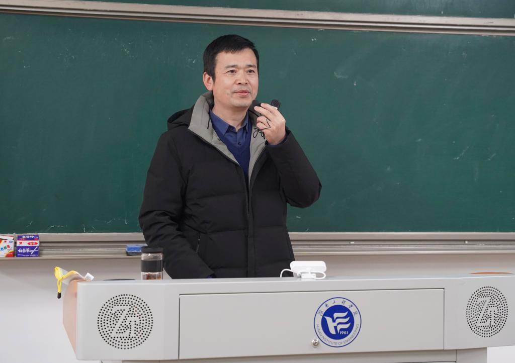党委委员、副校长张小刚为学生工作处、招生就业处、保卫处、团委、计算科学与电子学院、创新创业学院全体教师作宣讲报告。张小刚详细阐述了党的二十大报告中“中国式现代化”的深刻内涵。他要求广大教职员工牢记新时代教师教育职责使命,以教育高质量发展助力全面提升国民综合素质和中国式现代化建设,为建设教育强国、科技强国、人才强国贡献智慧和力量。