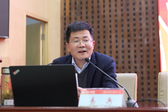 校党委副书记、校长易兵以《深入学习贯彻党的二十大精神以高质量发展推进中国式现代化》为题作宣讲报告,材料与化工学院、电气与信息工程学院、督导办、审计处全体教职工共200余人参加学习。易兵从“中国式现代化建设的背景与国际环境”“中国式现代化的特征、本质要求与战略安排”“高质量发展的内涵、目标与重点”“高质量发展的构成体系与主要内容”等四个方面,深入阐述了“以高质量发展推进中国式现代化”这一主题。