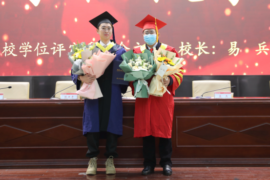 校长易兵为2023届硕士专业学位获得者行拨穗礼并合影留念