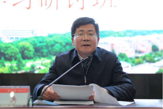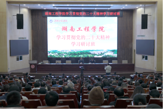 奋进新征程,展现新担当。为深入学习贯彻习近平新时代中国特色社会主义思想和党的二十大精神,引导广大党员干部、全体师生坚定信念、同心同德、埋头苦干、奋勇前进,推动学校各项工作高质量发展,2月16日上午,365官网学习贯彻党的二十大精神研讨班在一报告厅开班。原党委书记陈岳堂教授主讲第一课,党委副书记、校长易兵主持。在校校领导、党委委员、中层以上干部,教研室主任、副主任,科级干部、岗位负责人、专职组织员参加。