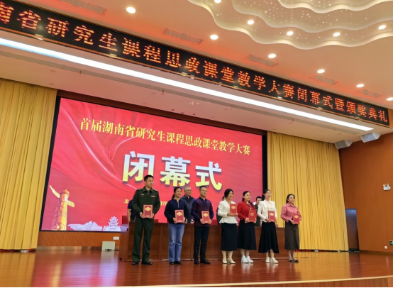首届湖南省研究生课程思政课堂教学大赛主题是深入贯彻落实习近平总书记关于研究生教育的重要论述和全国、全省研究生教育会议精神,以课程思政建设为牵引推动研究生培养单位做好“三全育人”工作,更好服务“三高四新”战略任务。本次研究生课程思政课堂教学大赛经过校级初赛、省级复赛,前后历时5个月,共有来自湖南省内19所研究生培养单位的91个教学团队进入复赛,56个教学团队挺进决赛,最终评出一等奖22项、二等奖34项、三等奖35项。